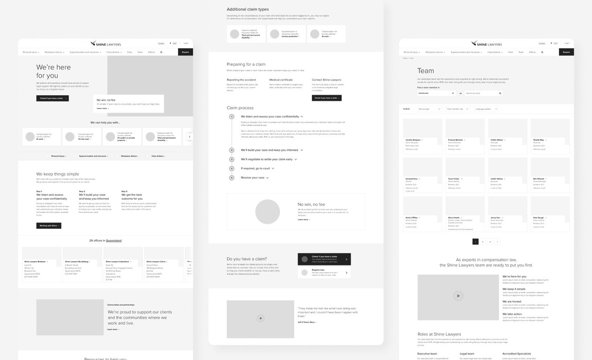We initiated the process with a strategic review of Shine Lawyers' analytics, research, and SEO objectives, collaborating to define user personas and establish the vision for the website.